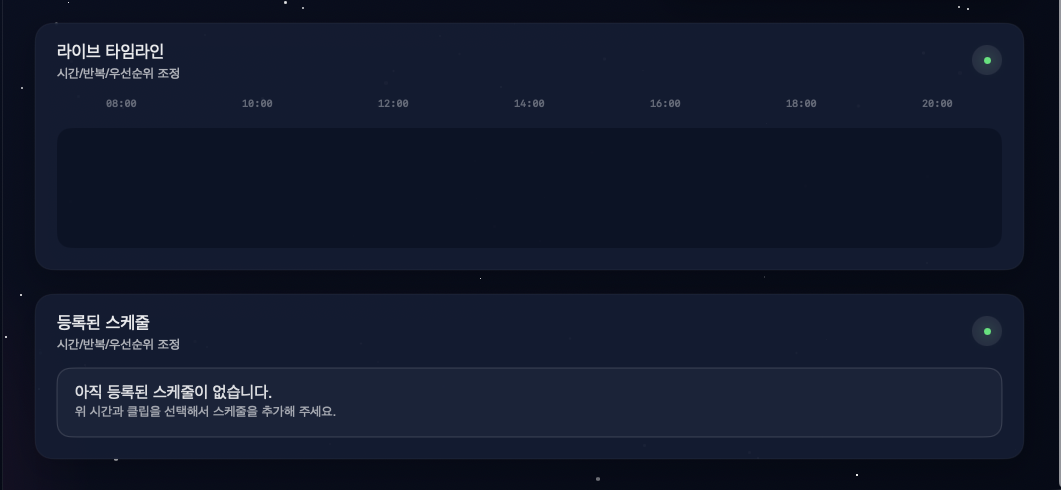 💡 다음 스케줄 표시: 대시보드 하단에 다음 예약된 스케줄까지 남은 시간이 표시됩니다.